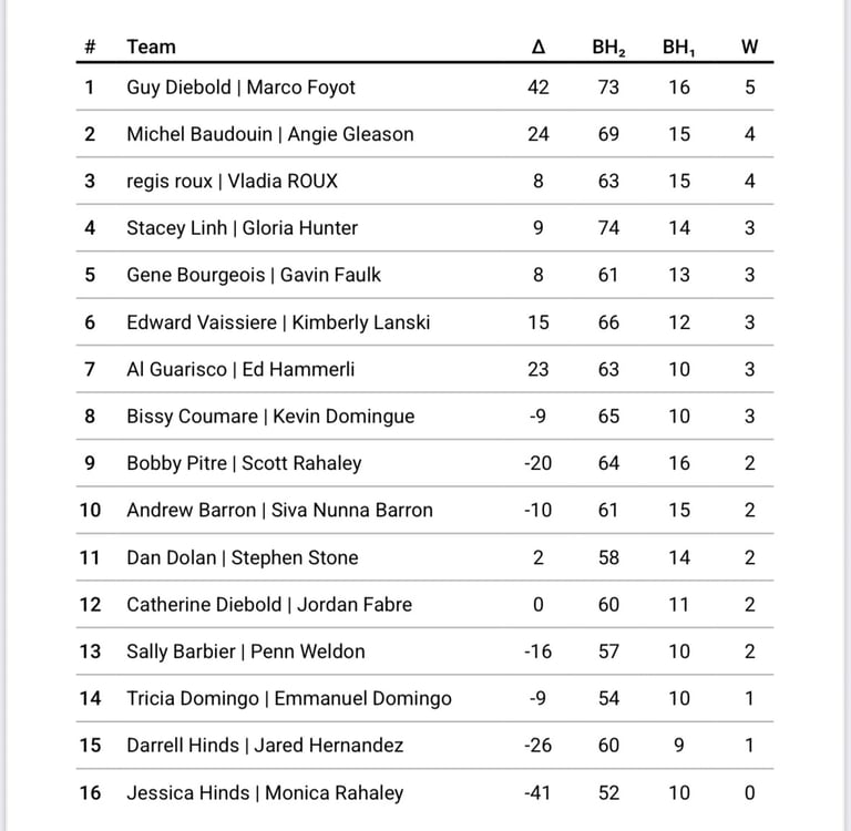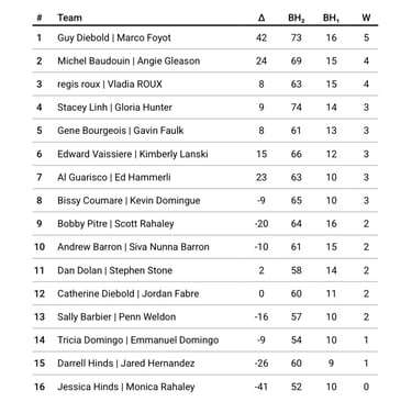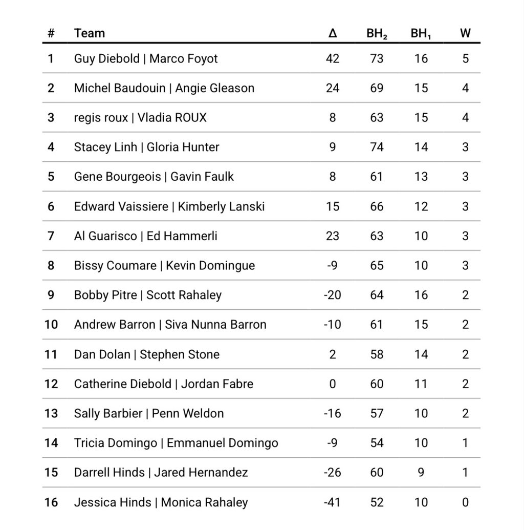Impressive come back from the first day ranking for those 2 Thibodaux's Teams !
