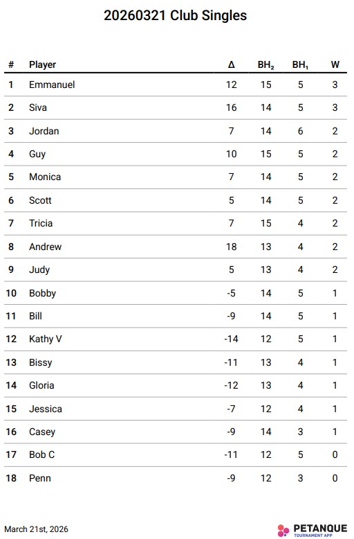 March Club Singles Match