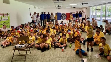 In addition to playing pétanque, we sprinkled in a bit of French language and culture—teaching the kids the warm-up dance “Les Pouces en Avant” (Thumbs Forward), which quickly became a favorite.